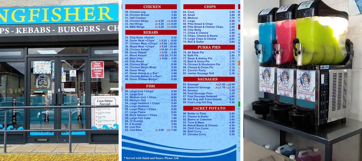 Kingfisher offers a massive selection of meals, including fish and chips, burgers, kebabs, curries, and more. With over 140 dishes, there’s something for everyone.